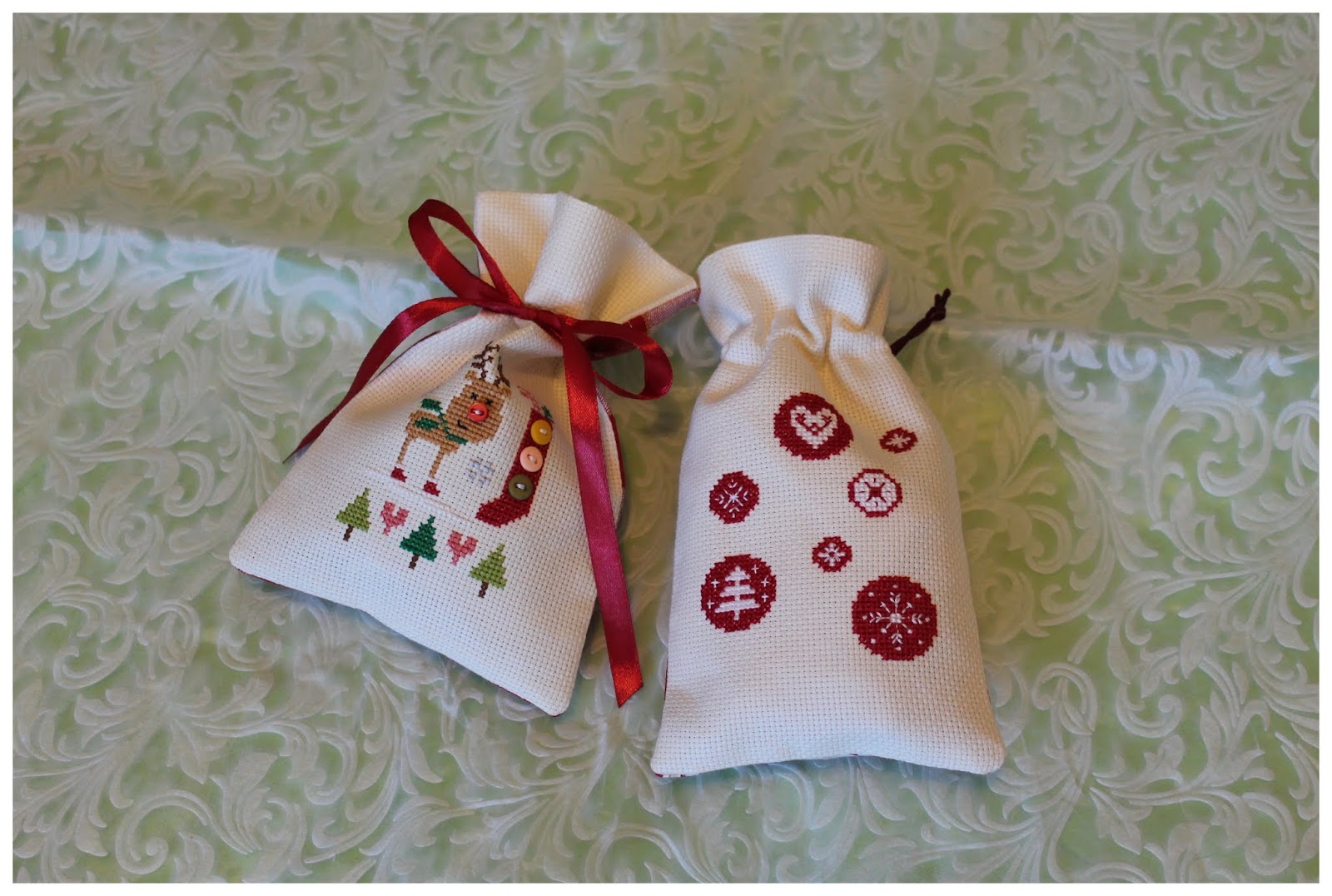 Mesmo com a falta de tempo e tantas mudanças, ainda consegui vir cá mostrar estes dois saquinhos que fiz para oferecer neste Natal :)